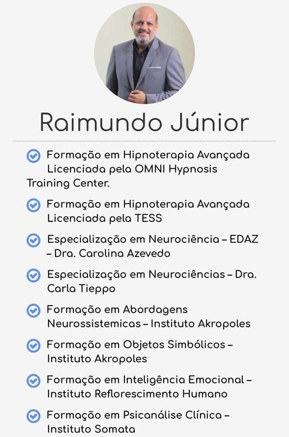 Se você busca hipnoterapia e psicoterapia com foco em transformação emocional, inteligência emocional e saúde mental, você está no lugar certo. Com o acompanhamento do Raimundo Júnior Hipnoterapeuta, você encontra um espaço de acolhimento, segurança e clareza para avançar no autoconhecimento e no equilíbrio emocional.